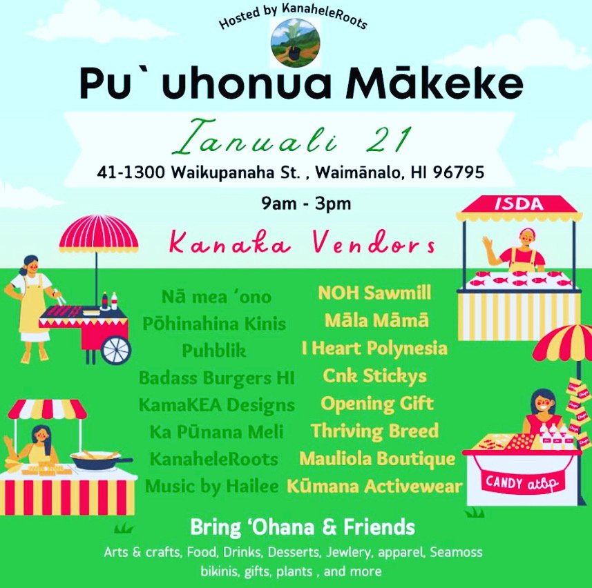 Come and see us at Pu’uhonua Mākeke on October 19, 2024 in Waimanalo at 41-1300 Waikupanaha Street. Look for the PURPLE Signs for guidance. The Nation of Hawai’i opens their gates to the PUBLIC for their Native Hawaiian Mākeke vendors and patrons. Experience what it feels like to be surrounded by so much beauty. Come for the vibes, the food, and the offerings.