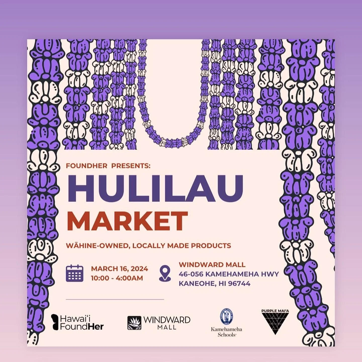 HULILAU MARKET Saturday, March 16, 2024 10:00 AM 4:00 PM Google Calendar ICS Our First Popup of the year went absolutely amazing!! Mahalo to Purple Mai’a and Hawai’i FoundHer for creating this space to Kāko’o Nā Wāhine Owned Businesses! Can’t wait for the next one!!