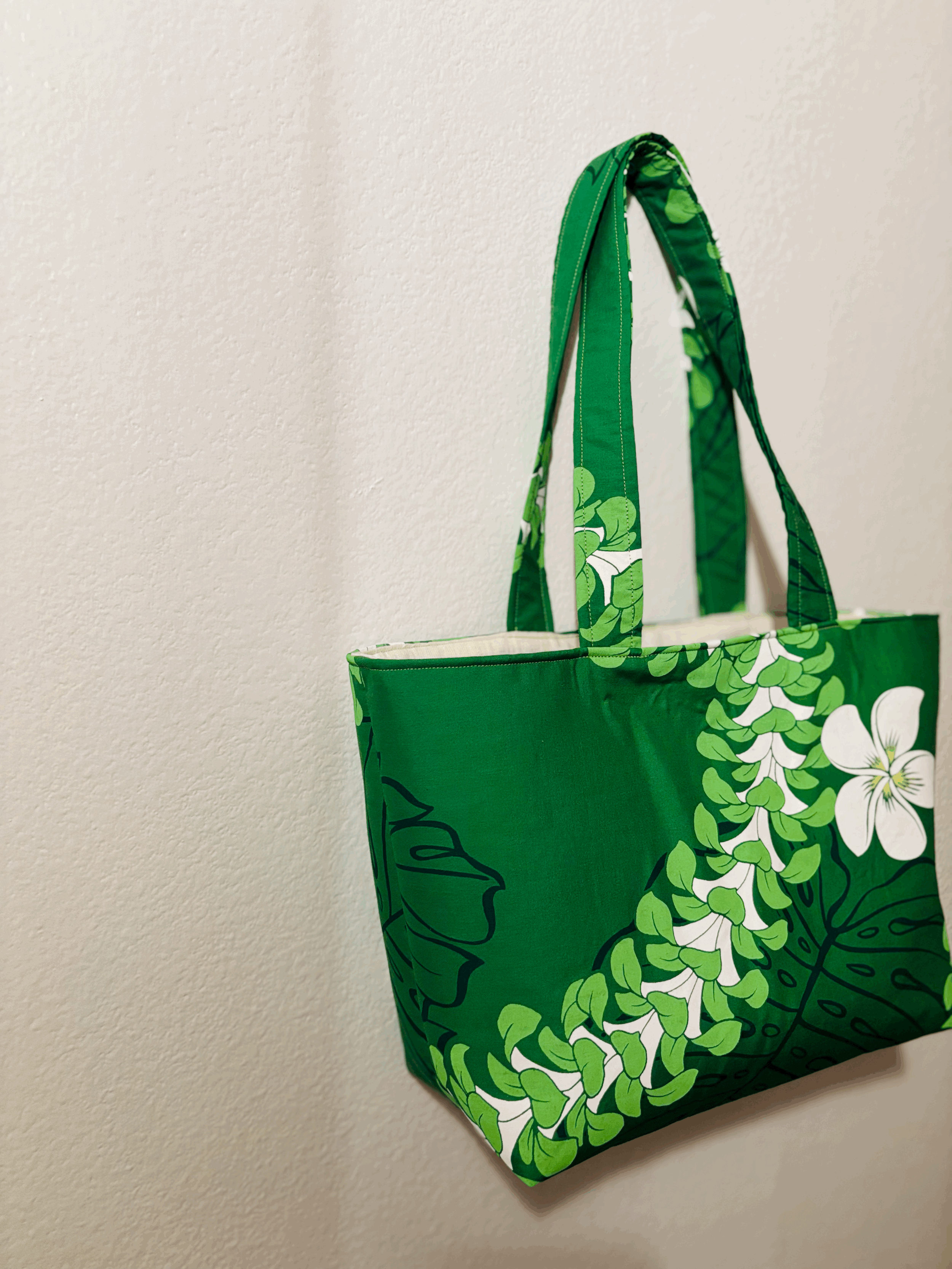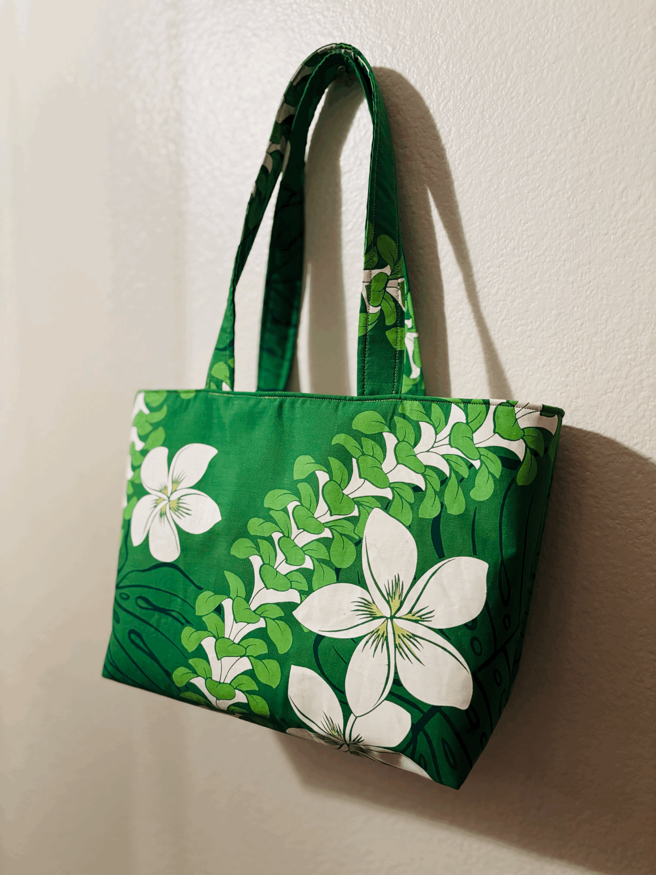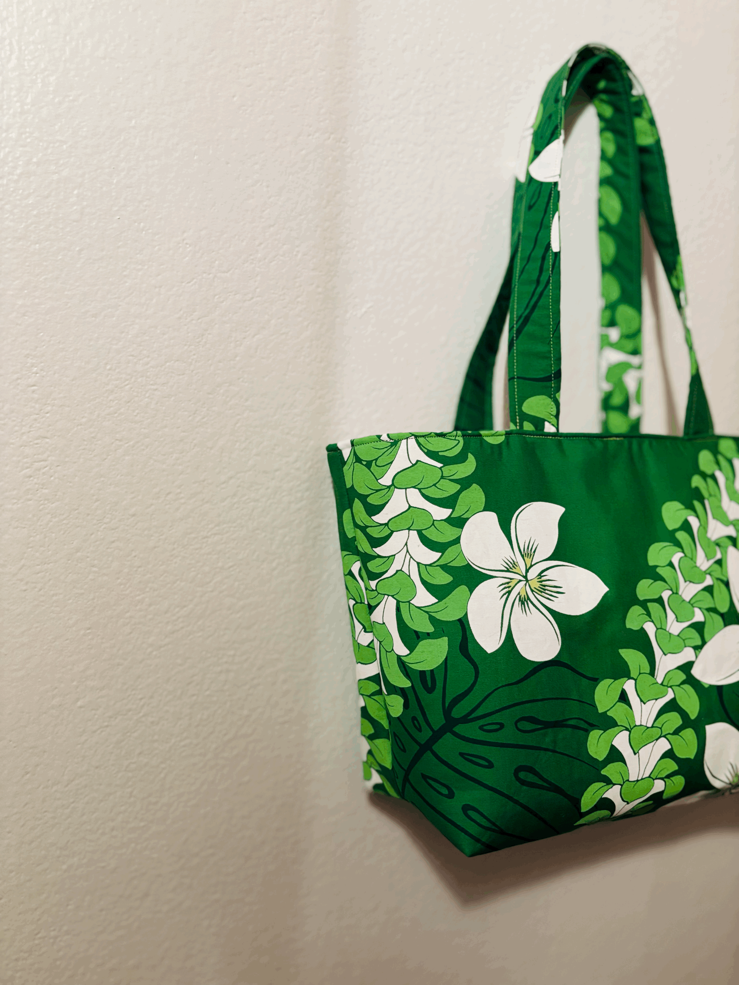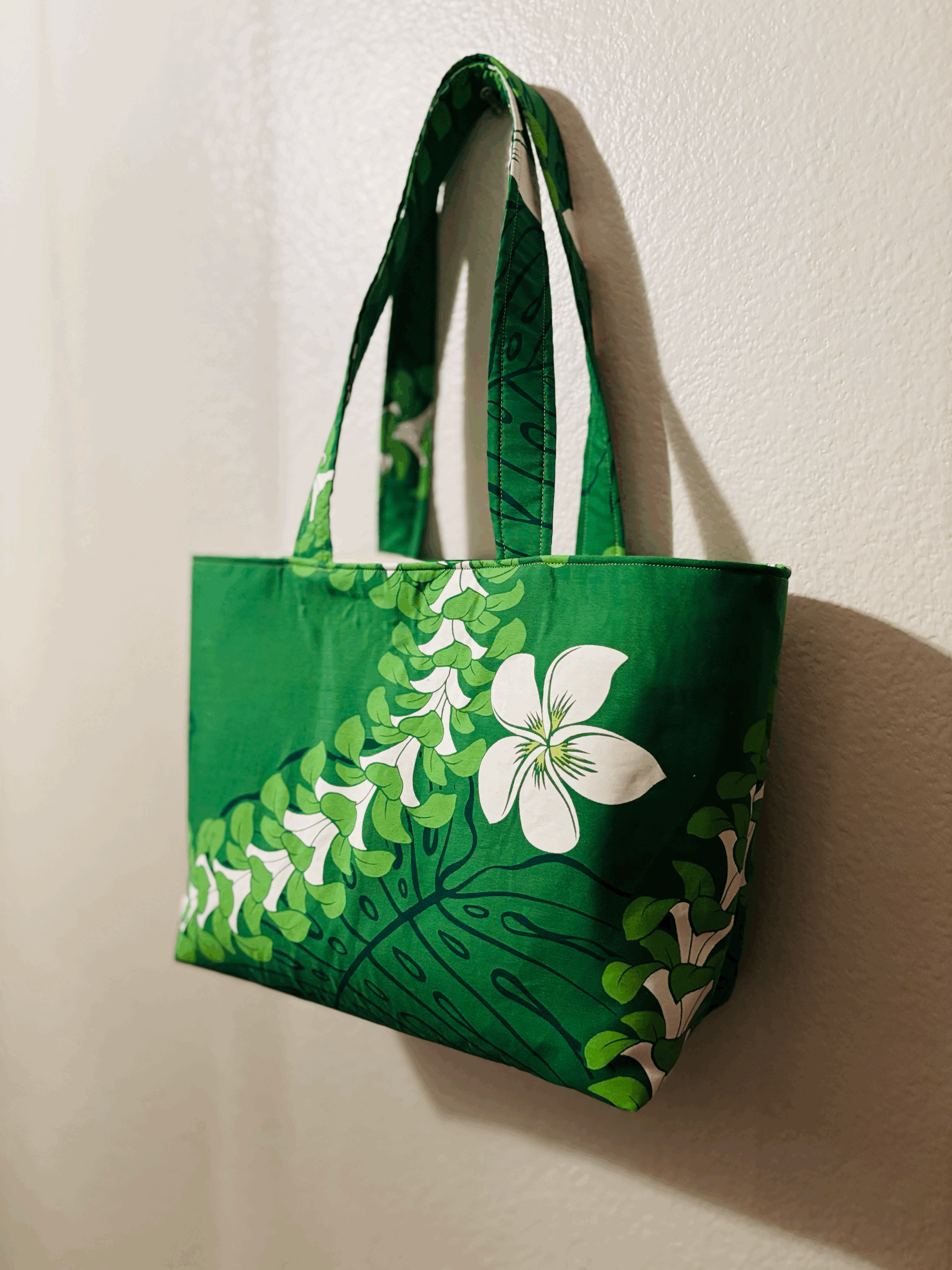Handmade in Ko’olaupoko Ahupuaa. Featuring Pua Plumeria with Forest Green Monstera Palm.